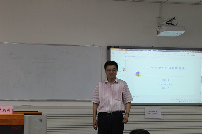 7月24日上午,国家社科基金项目评审专家,中国外语界面研究会会长,重庆市英语学科学术带头人,外语类核心期刊《外国语文》主编,四川外国语大学副董事长、博士生导师董洪川教授为国培学员带来了“文学经典与外语科研”学术讲座。