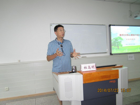 7月23日下午,太阳成集团tyc234cc教育科学公司副经理,四川师范大学兼职硕士生导师杜高明教授为国培学员带来了“教师实用心理辅导技术”专题讲座。