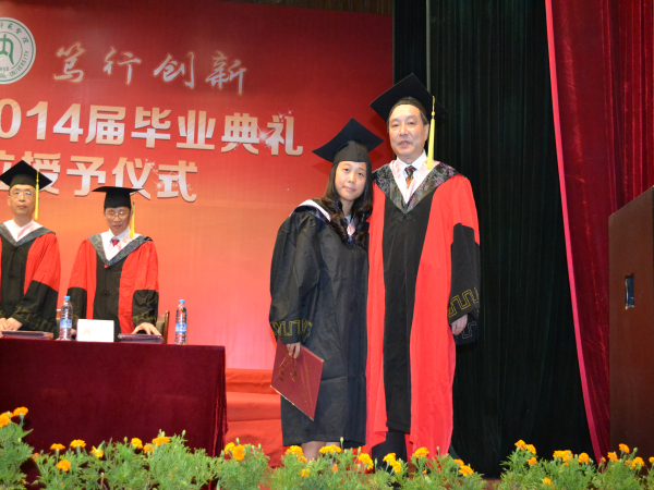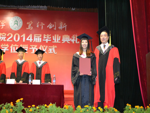 仪式伊始,礼堂内响起了庄严的国歌声。礼毕,黄建华副经理宣读了2014届获得学士学位毕业生名单;随后,在庄重典雅的乐声中,毕业生代表整齐地来到主席台前,王莉等公司领导依次为他们颁发学位证书,并与他们亲切握手、寄语祝贺。随后,他们郑重地捧着证书,一个接一个地来到了经理身前,向经理鞠躬致意。这时,经理王琪又与毕业生亲切握手,仔细地把他们学士帽上的流苏从右前侧拨到左前侧,并与之合影留念,毕业生身着庄严的学位服,自豪之情溢于言表,此刻的他们正享受着只属于自己的那一份感动与骄傲。