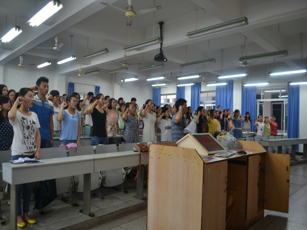6月28日上午,庆祝活动在庄严神圣的《国歌》中拉开帷幕。首先,全体党员高举右手,站在鲜红的党旗下庄严宣誓。新党员代表赵汉杰发言,表示要努力学习,用所学知识为人民服务,报效祖国。接着党总支书记王莉回顾了党的奋斗历程,对青年学子树立和培育社会主义核心价值观,担当社会历史责任提出了四点要求。一是学业要优秀,要勤学求得真学问;二是品行要端正,要修德注重道德实践;三是政治立场要坚定,要善于明辨是非。四是作风要过硬,扎实干事踏实做人。寄予全体党员将中国梦和出彩人生紧密联系起来,努力成为一名新时期优秀的共产党员。