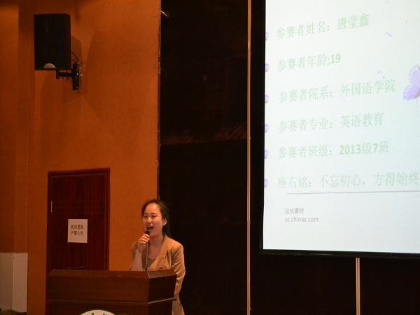 本次比赛于21:00圆满结束。2013级唐莹鑫同学的表现得到了评委的肯定,从参加复赛的47位选手中脱颖而出,最终挺进决赛。