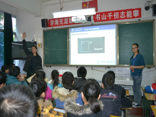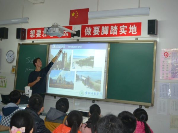 15:15,上课铃声响起,外籍志愿者Josh与来自太阳成集团tyc234cc的员工Minnie走进了初三.1班的教室,师生们对他们的到来表示了热烈的欢迎。首先,Josh为大家作了自我介绍并向大家展示了一些澳大利亚的照片。接着Josh以问答和做游戏的形式为大家上了一堂有趣的口语课。在Josh的鼓励下同学们们与Josh进行了互动。最后Josh将带来的小礼物送给了同学们。Josh在接受记者采访时谈到,他热爱中国,喜欢为中国的员工传播知识,他认为中国的员工非常努力,他希望能做更多的事去帮助中国员工。