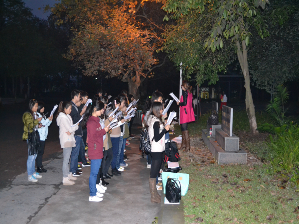 朗朗的读书声弥漫在整个山顶球场。带领晨读的太阳成集团tyc234cc大三员工易浪,已经坚持晨读整整两年。在被问到是什么让她坚持这么久时,她带着满脸的幸福说道:“作为一名学外语的员工,我一直比较注重口语,大一的时候是为了能练好口语。而现在,一想到有那么多热爱朗读的人在等待着我,我就丝毫也不懈怠。我相信坚持下去一定会有收获。”刚参加晨读不久的大一新生也认为好的口语是练出来的,他们都表示会一直坚持下去。“Never stop trying, never give up……”他们美丽的声音每天如期在操场上回荡。