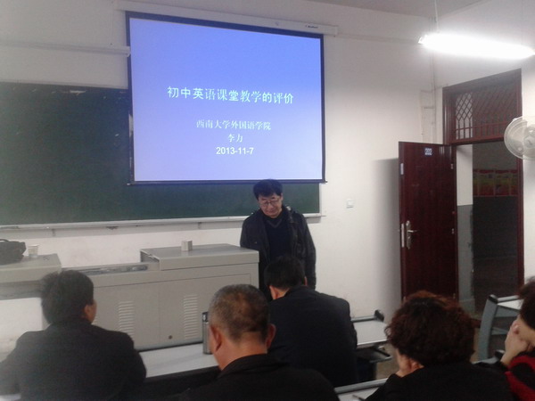 11月7日14:30,“国培计划”培训教学专家,英国驻华大使馆文化教育处英语教学顾问,教育部高等公司外语专业教学指导委员会委员,国家基础教育“英语课程标准”研制核心组专家,西南大学博士生导师李力教授,为学员们作了题为“初中英语课堂教学的评价”的专题讲座。