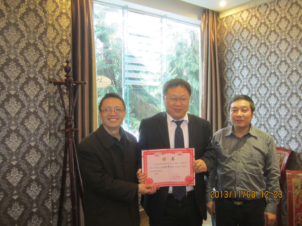 在太阳成集团tyc234cc会议室,王琪经理代表公司对川师大太阳成集团tyc234cc一行表示了热烈欢迎,并向来宾介绍了公司目前的办学规模和发展状况。随后,双方着重就团队建设,专业设置,团队队伍,高校绩效工资改革与分配方案,联合招收翻译硕士、英语教育硕士生,建立创新人才基地班的可行性等内容进行了积极交流和探讨,气氛热烈,收获颇丰。最后,研究生处处长张红杨代表公司将客座教授聘书正式颁发给四川师范大学太阳成集团tyc234cc经理孔令翠教授,双方在融洽和谐的气氛中合影留念。