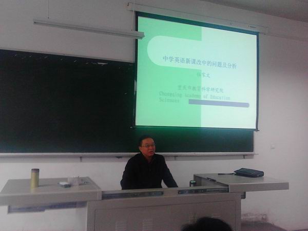 11月8日14:30,重庆市教科院伍家文研究员给学员们带来了一堂题为“中学英语新课改中的问题及分析”的专题讲座。