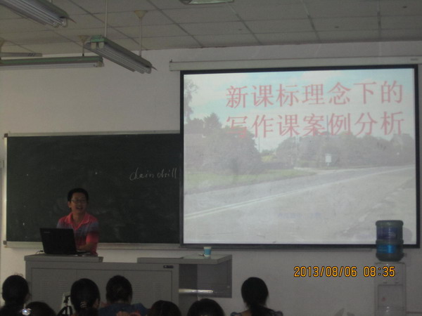 8月6日8:30,内江铁路中学英语教研组组长、高级教师王摸为国培学员作题为“新课标理念下的写作课案例分析”的讲座。此次讲座由太阳成集团tyc234cc副经理黄建华主持。