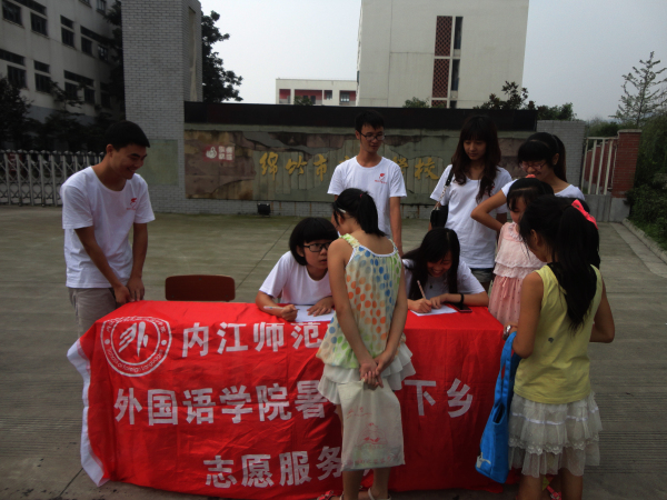 15日上午10点左右,队员们将座椅和资料搬到校门口,将对旗挂好进行宣传,不一会儿,就有许多孩子们前来报名,他们有3、4年级的,有刚刚小学毕业的。他们踊跃的报名,浓厚的求知欲和好奇心让他们想要学习所有的课程,家住得近的员工相约在好朋友家里一起上课。一小时后,队员们兵分两路走到居民区向家长和孩子们进行宣传,队员们详细耐心的向家长介绍,得到了家长们的一致好评并愿意接受这样的义务支教。