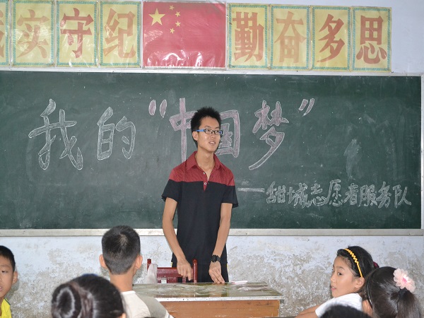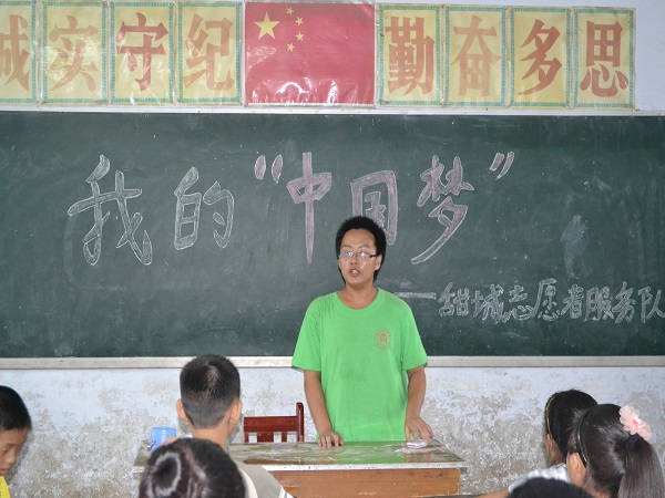 下午5点,在结束了一天的课程后,队员们召集所有员工召开了一场名为“我的中国梦”的主题班会。在班会上,志愿者们首先分享了自己的中国梦。接着,同学们纷纷向大家讲述了自己的中国梦。其中,来自5年级田萍同学说道:“我要做一个医生,拯救更多的人。”而另一个男同学则说道:“我长大要做一个老师,这样的话就帮可以助实现更多的小梦想,因为中国梦是一个大范围的说法,它是由许多小梦想组成的。只有完成了小梦想才能完成中国梦。”当听到这样的话语,队员们不禁几多感叹。