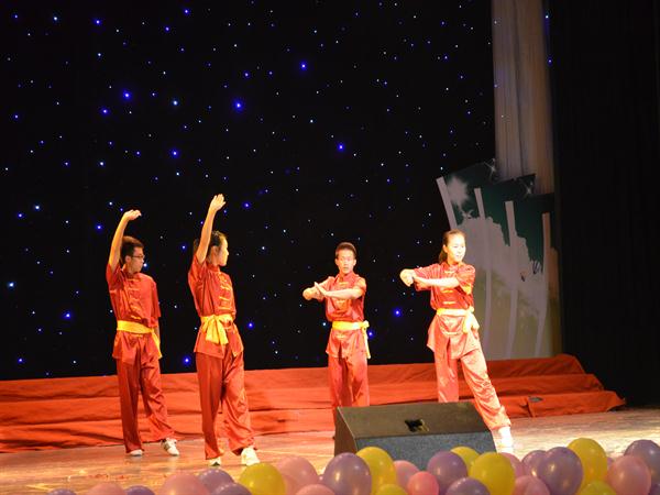 晚会在外教Daniel倾心演唱的“Love on the Rocks”中拉开帷幕,Daniel的现身引起了现场同学们的阵阵欢呼声,引爆现场的一个小高潮;随后表演的爵士舞“Telephone”,也博得场上观众的赞叹连连;由体育公司同学友情出演的武术表演向我们展示了中国传统武术的博大精深,博得外教们的阵阵惊叹;由外教Luis和徐梦同学联袂出演的诗歌朗诵《再别康桥》,为同学们营造出了一股浓浓的民国风情;段蕴桐同学带来的古筝弹奏《雪山春晓》更是将中国的传统音乐演绎得淋漓尽致,引人入胜;李宇航和他的舞伴龚梦娇把歌曲“Monster”演绎完美,将现场气氛带入高潮,赢得掌声不断;晚会最后在精彩的音乐剧“Alice’s Adventures in the Wax Museum”中落下帷幕。