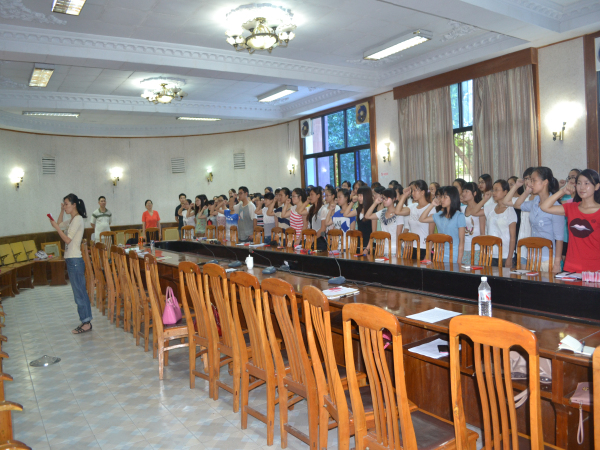 仪式上,王莉书记首先向62名新加入党组织的同学表达了祝贺并向全体党员致以节日的问候。紧接着,她简要地回顾了我党的发展历程以及所取得的辉煌成就,希望全体党员牢记党的历史,与党保持高度一致,坚定不移地跟党走,为实现中华民族的伟大复兴努力奋斗。最后,她给党员们提出了几点要求:一是加强理论学习,树立远大的理想;二是加强党性修养,大力弘扬爱国主义精神;三是加强专业学习,锤炼实现“中国梦”的过硬本领;四是加强组织纪律观念,起好模范带头作用,为党旗添光彩。