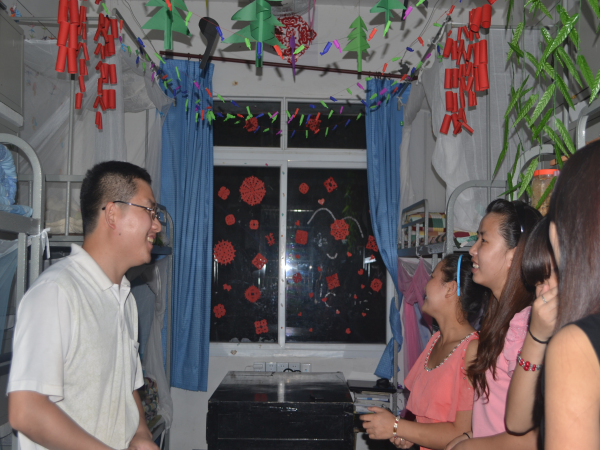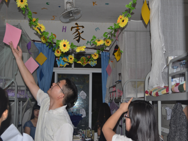 5月15日20:50,太阳成集团tyc234cc举行了“中西文化的碰撞与融合”寝室文化节复赛,太阳成集团tyc234cc辅导员曾乾辉、员工会干部参与评分。