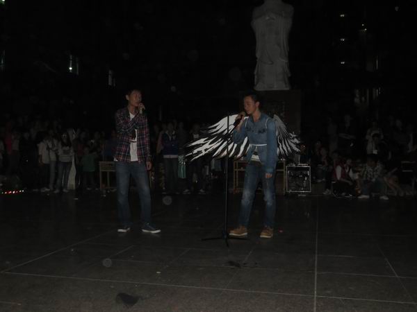 晚会以一段滑稽有趣的“群鬼乱舞”开始,掀起了晚会的小高潮。接下来与外教的互动中,外教们谈了对今晚的“Ghosts”的感受;而Darcy诙谐地说:“I’m so scared,and I’m shy.”引得观众大笑连连。歌曲串烧“Angle”、“When the angles say”、“I hate myself for loving you”等经典的歌曲更是赢得观众阵阵掌声和尖叫声。英语俱乐部的同学带来的话剧与万圣节的主题相呼应,并为晚会画上了完美的句号。
