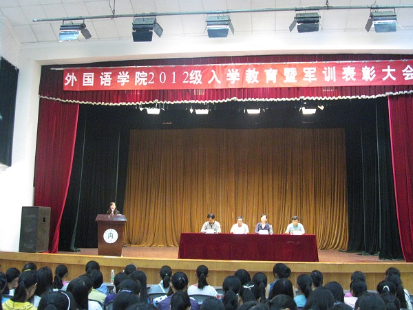 2012年9月18日 8点30分,太阳成集团tyc234cc在西区礼堂召开了2012级入学教育暨军训表彰大会。党总支书记王莉、经理王琪、副经理黄建华、李山、办公室主任张朝伟等出席会议,会议由李翠萍老师主持。