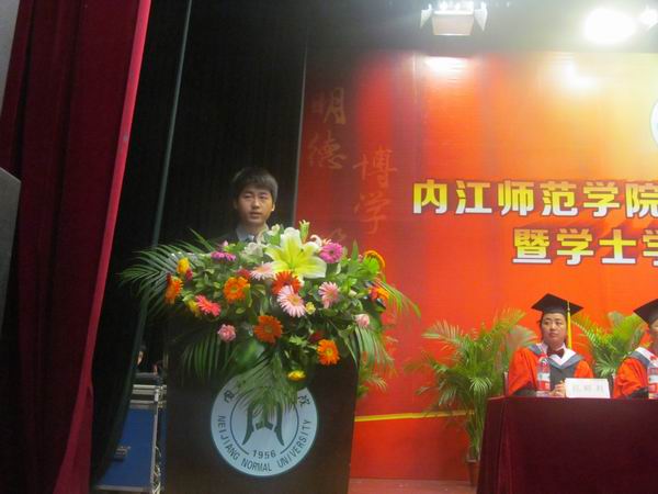 接着,虎娅玲同学作为毕业生代表发言。她首先向老师表达了自己最衷心的感谢和崇高的敬意,并表示在新的人生征途中以更加优异的成绩回报社会,回报母校。在校生代表胡小波,教师代表魏昭颖分别发言,表达了对毕业生的惜别之情,并向他们送上了美好的祝福。