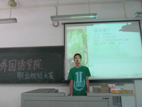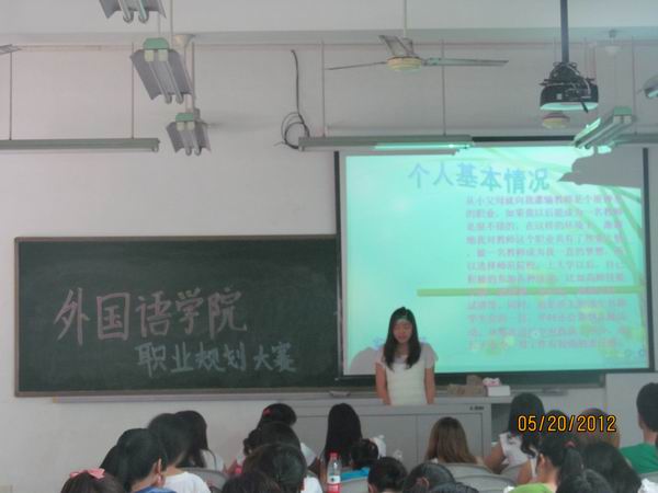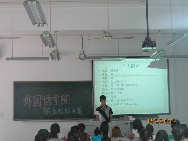首先,主持人介绍了本次比赛的流程及规则;随后,比赛正式开始。本次比赛的主要分两个步骤:第一,各参赛选手进行自我介绍介绍及演示各自的参赛作品;第二,参赛选手讲解PPT,为大家展示自己的职业规划。其中,2010级的胡小波,凭借流畅地表达、明确的职业规划、丰富的兼职经验,得到了评委们的一致好评。