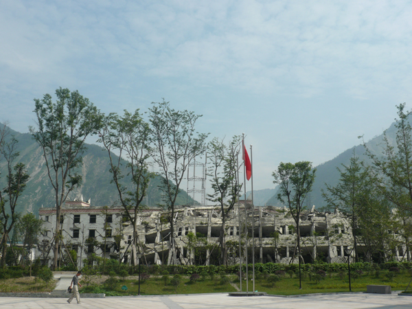 7月19日,根据支教计划安排,全体队员们踏上了映秀地震遗址的考察之路。映秀是5.12汶川大地震的震源,镇内青山连绵不断,绿水长流,平均海拔1300多米,是通往世界自然遗产保护区九寨沟黄龙和达古冰川的必经之地,也是阿坝州的门户重镇。当团队到达映秀中学遗址时,映入眼帘的是大地震造成的断壁残垣和千疮百孔的建筑,震撼着在场的每一位队员的心灵,仿佛地震时的画面不由地浮现在眼前,久久都挥之不去。那些坍塌的房屋和深埋于地底的建筑,无一不在述说那场地震的惨烈和惊心动魄,昭示着生命的脆弱而珍贵,愿逝者安息,生者坚强吧!如今,重建后的映秀以其得天独厚的地理位置吸引了无数的游客,也促进了当地经济的发展。