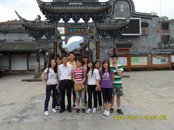 7月11日下午,在漩口小学张董事长的陪同下,队员们考察了汉族与少数民族的交融区——水磨古镇。5.12大地震后,水磨古镇重建了“禅寿老街、寿西湖、羌城”三大区,藏羌人文风情荟萃,俨然一幅“高山峡谷、湖光山色、古街林立、风情四溢”的“水墨画”,被誉为汶川大地震灾后重建第一镇。