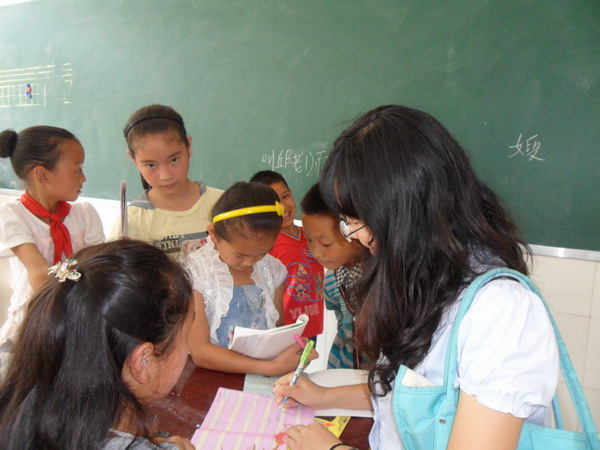 在得知我们将要离校后,天真可爱的孩子们紧紧的抱着老师的腿,拉着老师的手,不停的问:“老师你们什么时候回来?”、“老师,今年寒假还来不?”;有的孩子专门到山上采了鲜花献给自己的老师;还有的孩子把自己最喜欢的布偶娃娃送给了老师。