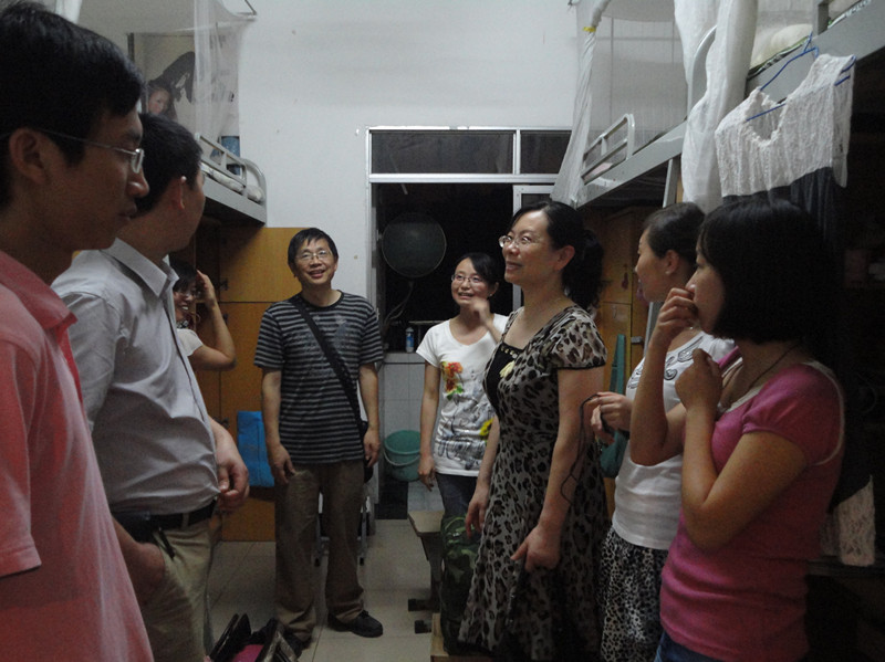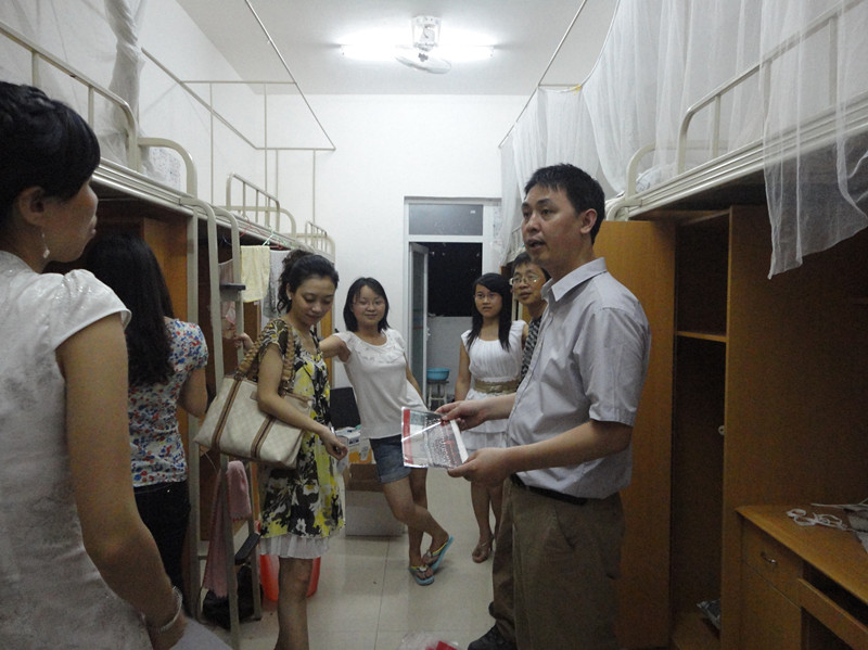 6月22日晚8:30,公司党总支书记王莉、副书记唐德斌、副经理黄建华、学工办副主任谭思师、辅导员胡琳和班主任韩锋、闻莉、刘春鱼等老师亲临毕业生寝室看望慰问2011届毕业生。