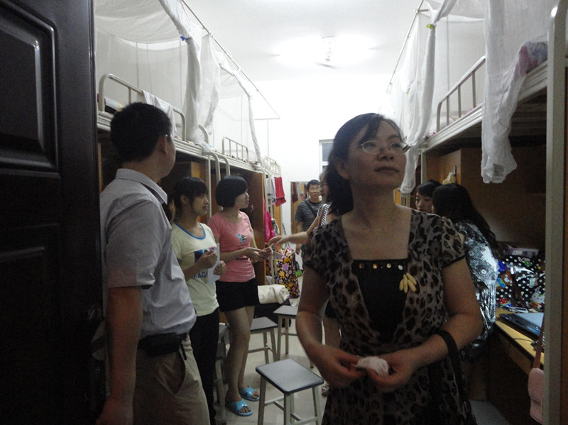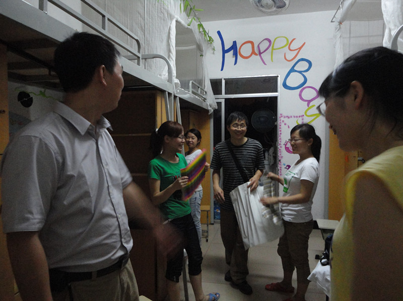在胡琳老师的指引下,大家首先走访的是20幢,当老师们来到毕业生寝室时,许多毕业生正在打点自己的行李,一见到老师,大家都不约而同地放下手中的活儿,热情地欢迎老师的到来。老师们纷纷表达对毕业生的慰问并叮嘱她们路上注意安全,还欢迎她们常回“家”看看。