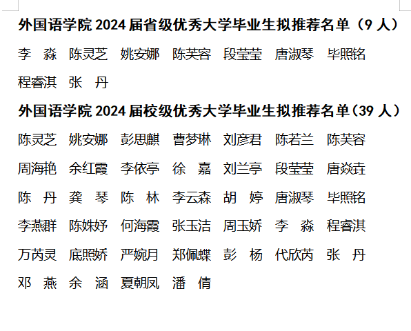 根据《太阳成集团tyc234cc关于评选2024届优秀毕业生的通知》的文件精神,本着公开、公平、公正的原则,经员工申请、班级推荐、学工办复查、公司审核等环节,现将公司2024届省级优秀大学毕业生、校级优秀大学毕业生拟推荐名单向本院公示如下: