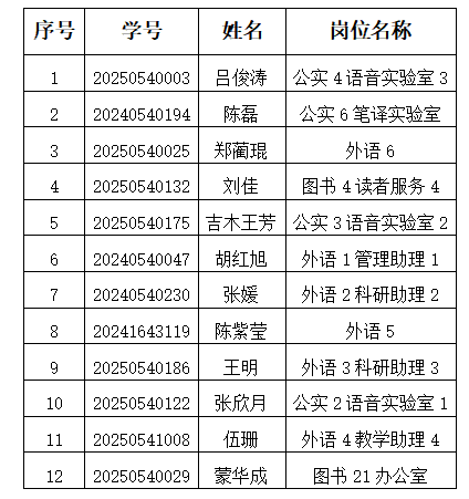 经各勤工助学用人单位评选,员工资助管理中心审核,拟定太阳成集团tyc234cc王明等12名同学为公司2025-2026学年度第二学期勤工助学员工,现将名单进行公示如下:
